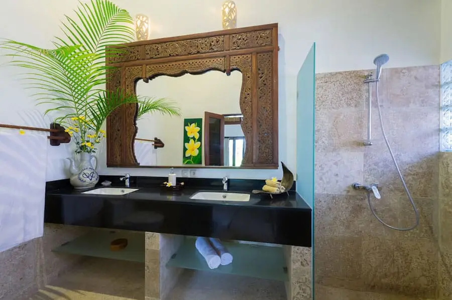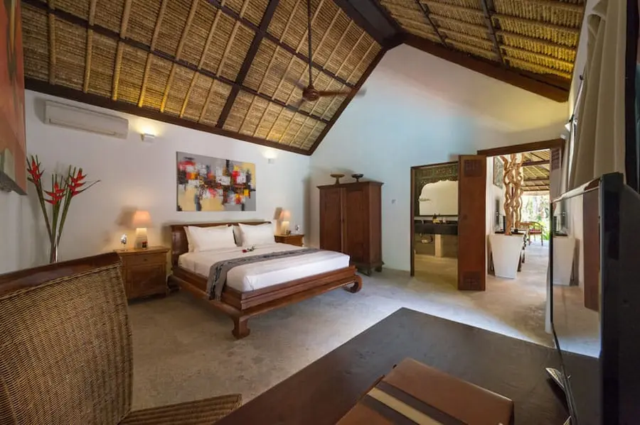 The villa features four bedrooms, each with its own ensuite bathroom, offering guests a variety of choices. Each room is carefully configured with the same amenities, making all four bedrooms feel like master suites. It’s rare to find a villa in Bali that embodies so many desirable characteristics for a rental villa.