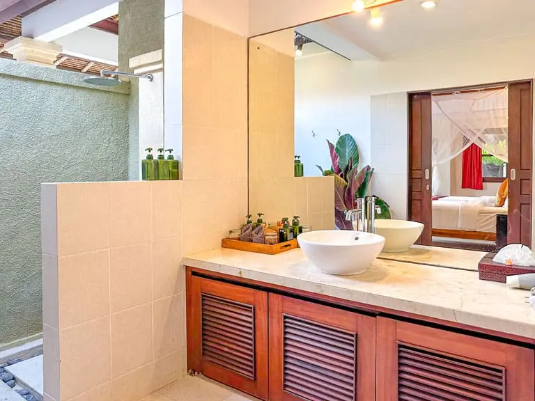 - Situated in a quiet lane close to Seminyak’s center and Legian.