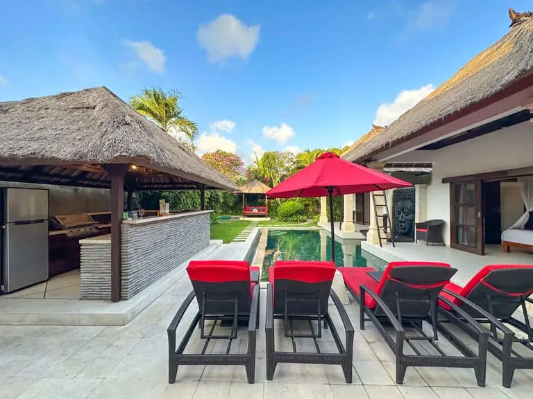 Welcome to Villa Rama, a beautifully designed Balinese style 3-bedroom private pool villa in Seminyak. The moment you step through the doors of Villa Rama, you’re greeted by a lush tropical garden, expansive green lawns, and a traditional Balinese villa that epitomizes luxury and tranquility.