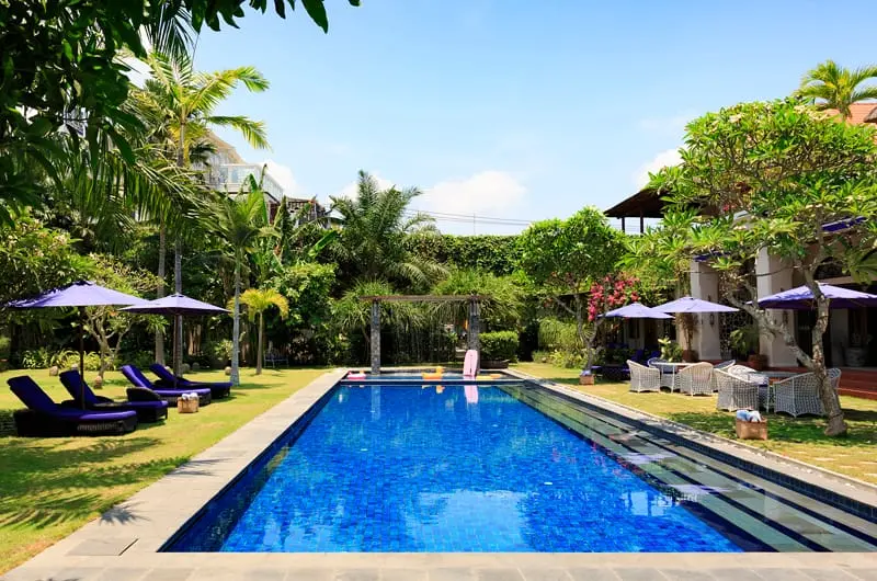 Indulge in a delicious meal illuminated by the warm glow of the chandeliers, or watch a famous Balinese sunset from the rooftop surrounded by the perfectly landscaped tropical garden. During the balmy days, lounge on the comfortable chairs under ample umbrellas and watch the children play in the custom-made cubby house or the specially designed kids’ splash pool.