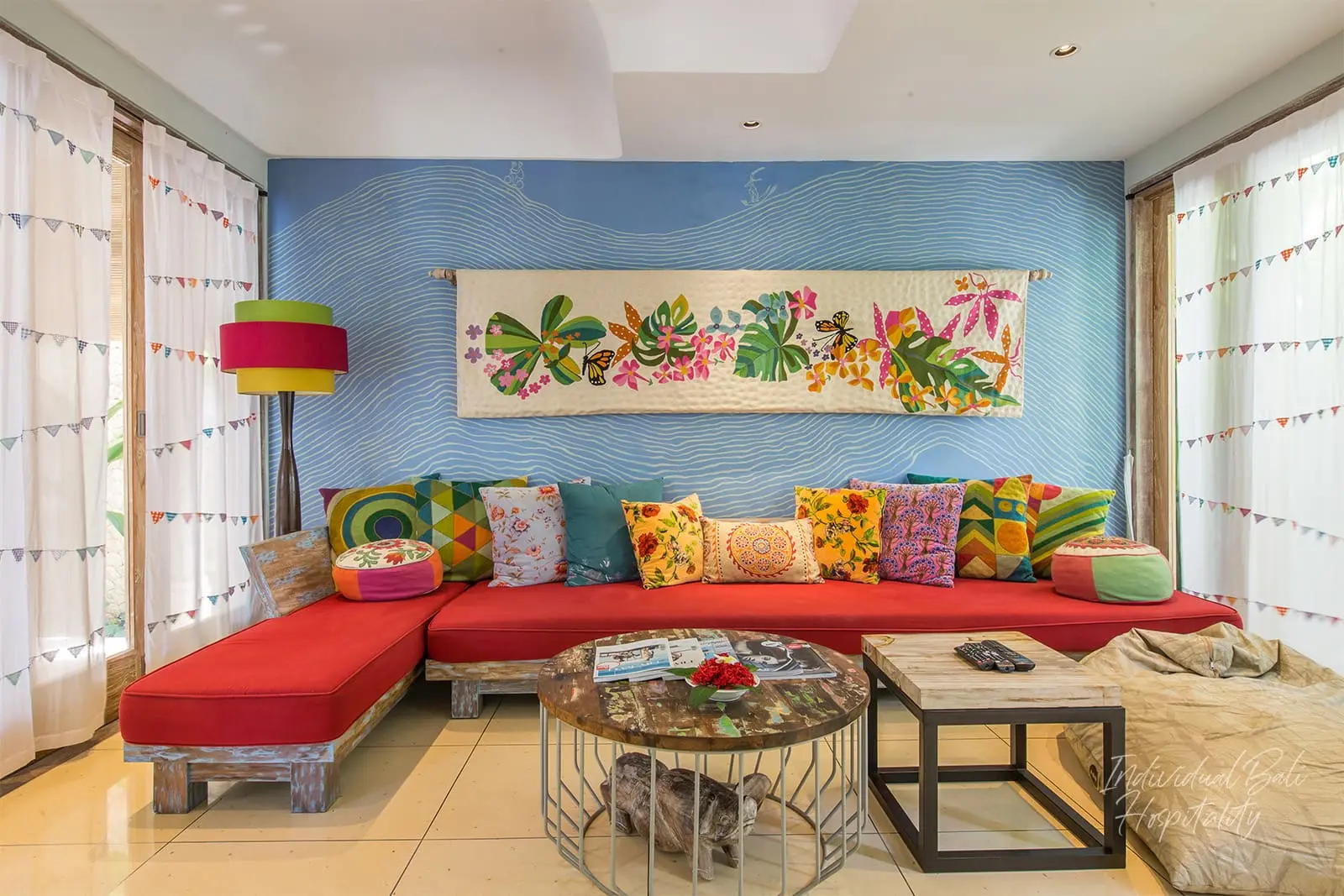 Experience a unique and energizing concept villa in the vibrant heart of Seminyak, meticulously designed by the famous China Singer Actress, Ms. Lien Li. Villa Sky Li offers a stylish and modern retreat, decorated with wood furniture, incredible art pieces, and vibrant colors, creating a warm and inviting atmosphere. Situated just five minutes’ walk from the beach, this two-level villa can accommodate up to 6 guests in its three bedrooms.