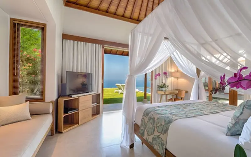• Overlooks the white sands of Nunggalan Beach and offers panoramic ocean views, sunsets, and starry nights.