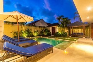 The villa is situated down a lane off Jalan. Kayu Aya (Laksmana, or ‘Eat Street’), called Gang Darma. Less than a minute walk will bring you into the centre of bustling Seminyak, a fashionable area with an abundance of boutique shopping options, as well as numerous restaurants, spas, art galleries boutique shops and nightclubs. The beach is only a 15 minute walk from the villa, which is the perfect place to enjoy a stunning sunset. The villa is so close to everything you’ll need to make your holiday perfect.