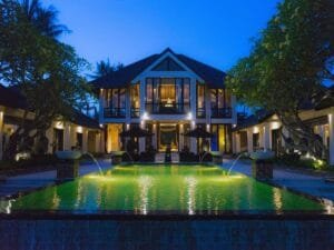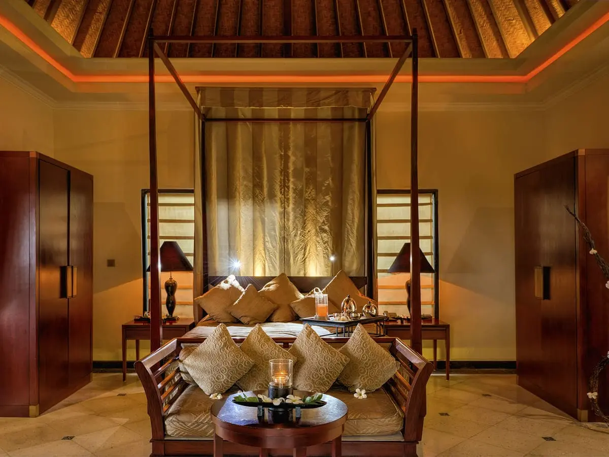 Designed in a contemporary Asian style and lavishly appointed, the villa’s architectural grandeur emphasizes majestic dimensions, creating an atmosphere of serenity and refinement. Surrounded by verdant rice fields and coconut groves, the villa’s beachfront setting and landscaped gardens facing the Indian Ocean offer a spectacular sight.
