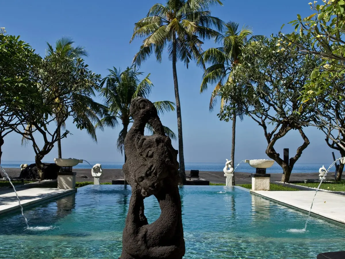 This Luxury Villa rests in the quiet coastal village of Saba, in an area collectively known as Ketewel, within Bali’s eastern Gianyar Regency. Villa’s gardens stretch down to Saba Beach, with a reminder Bali is a volcanic island, as its sands are shimmering black. The deserted stretch of beach offers unobstructed panoramas with stunning views across the Badung Strait and Nusa Penida, opposite, one of Bali’s smaller sister islands. And on a clear day, the silhouette of towering volcano, Mount Agung, is visible in the distance. Sunrises are a spectacular treat here, especially over Nusa Penida’s limestone cliffs.