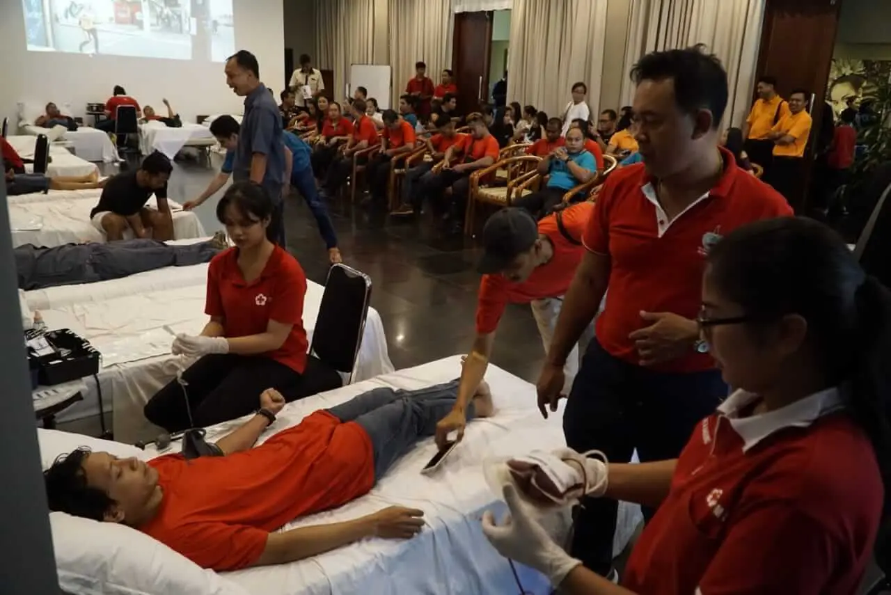 The purpose of this activity is to help blood supply in (Palang Merah Indonesia) PMI to meet transfusion needs. Besides this activity aims to increase public awareness of maintaining health by regular blood donation, “said Ketut Darmika”.